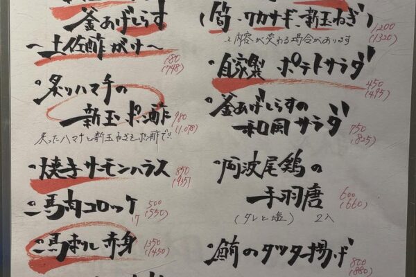 ご注文をいただいてから店内の生簀で泳ぐ真鯵を捌き、活け造りや握りでご提供いたします(活け造り 1,595円 / 活け握り 1,815円)。透き通る身はコリっとした弾力があり、噛むほどに甘みが広がるのが特長です。仕入れによっては日替わりの鮮魚もお楽しみいただけます。